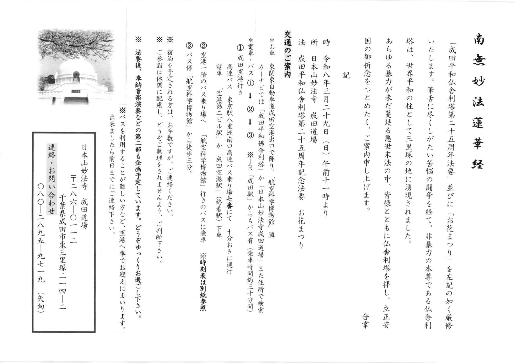 したく存じます。 ここに謹んで御案内を致し重ねてお願い申し上げます。 合 掌